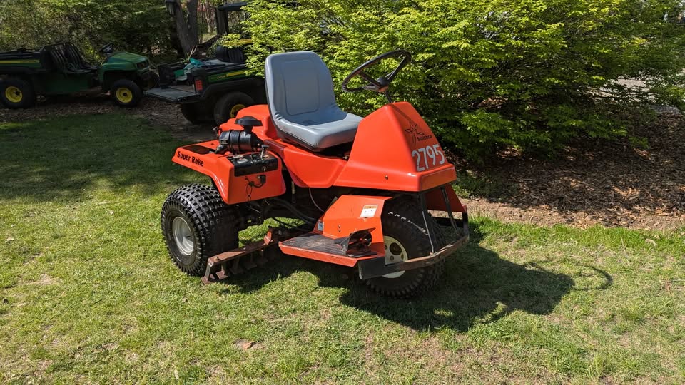 Used Smithco Super Rake with 2 Cylinder Vanguard Engine. In Good Running Condition. Comes as Pictured.